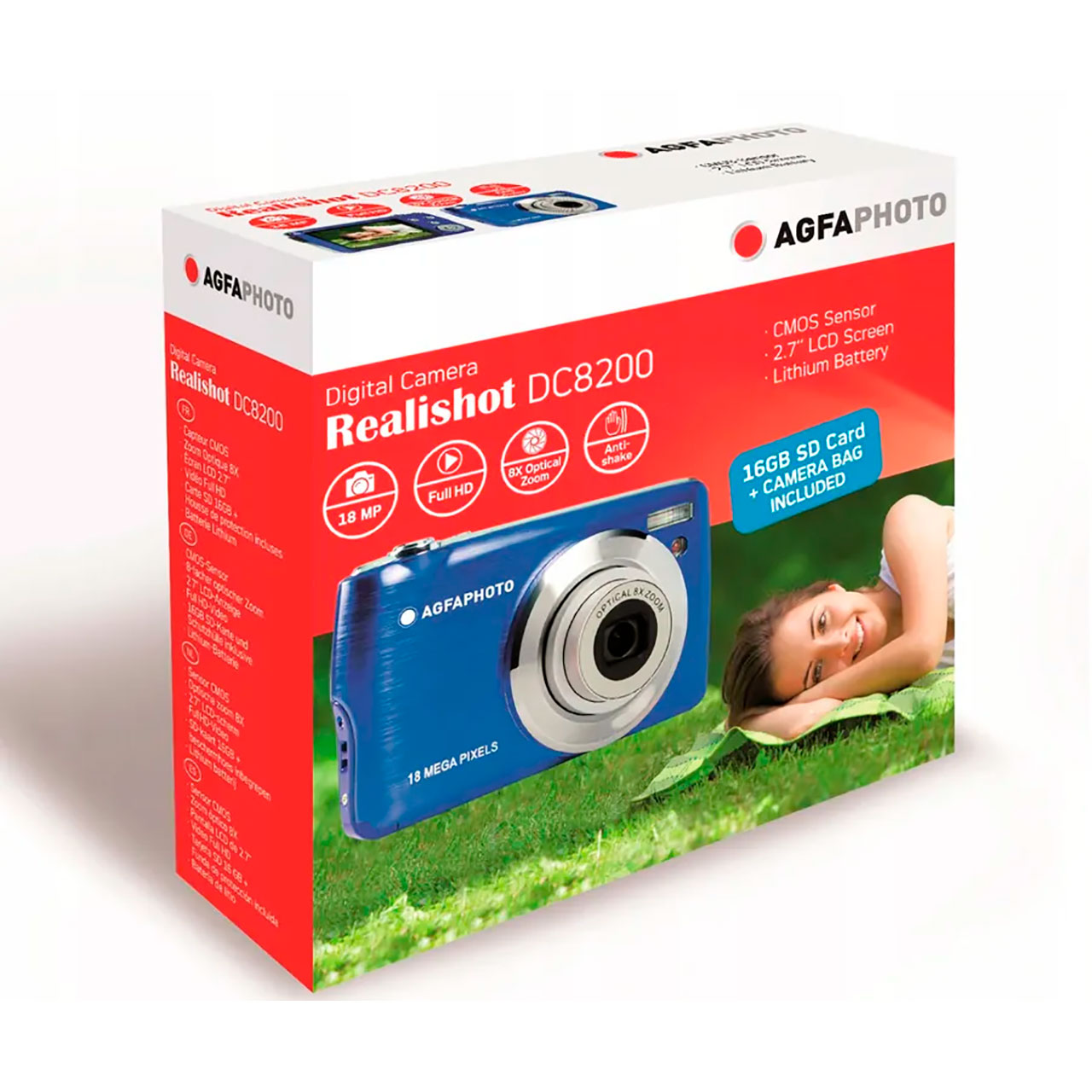 Agfa DC8200 Cámara Compacta Azul + SD 16Gb | 21 MP, Pantalla LCD 2,7″, Zoom 8x digital, Full HD