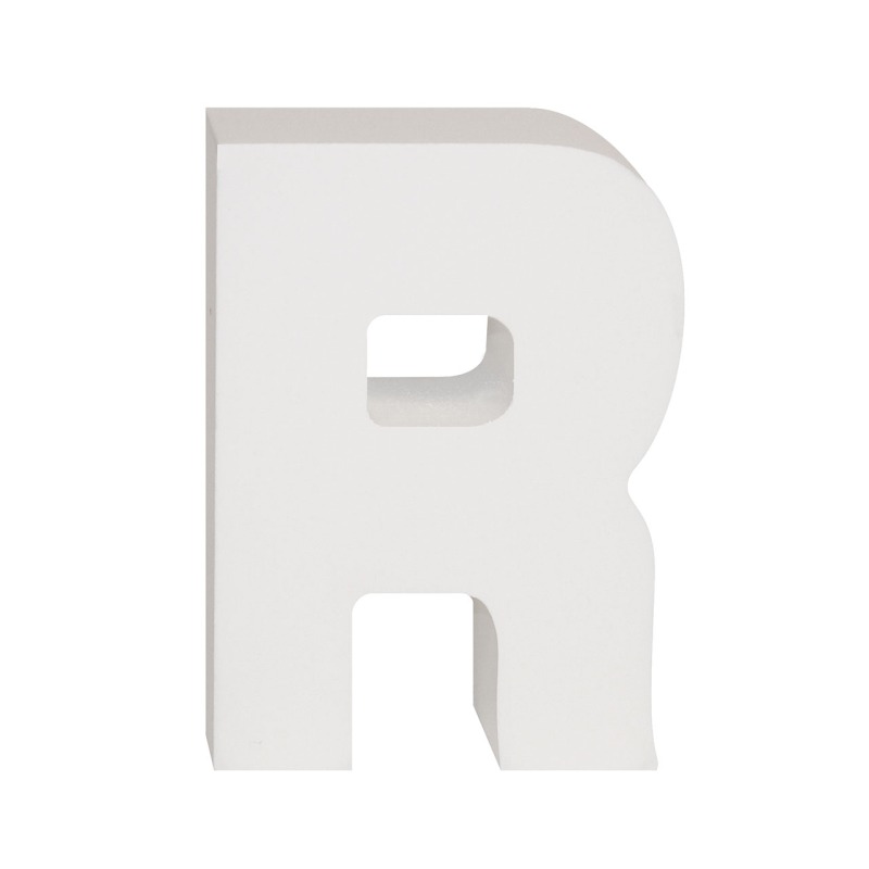 AP Letra Decorativa MDF (certificada FSC) perfecta para la decoración de tu hogar. Ideal para pared o sobremesa, con esta letra R de 7 x 10 cm en color blanco podrás personalizar tu casa o tus eventos más especiales.