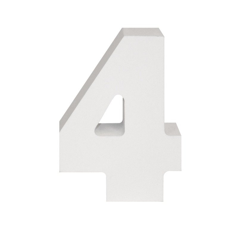 AP Letra Decorativa MDF – núm. 4 15×28 Blanca | Letra Madera Mdf (certificada FSC) para pared y sobremesa
