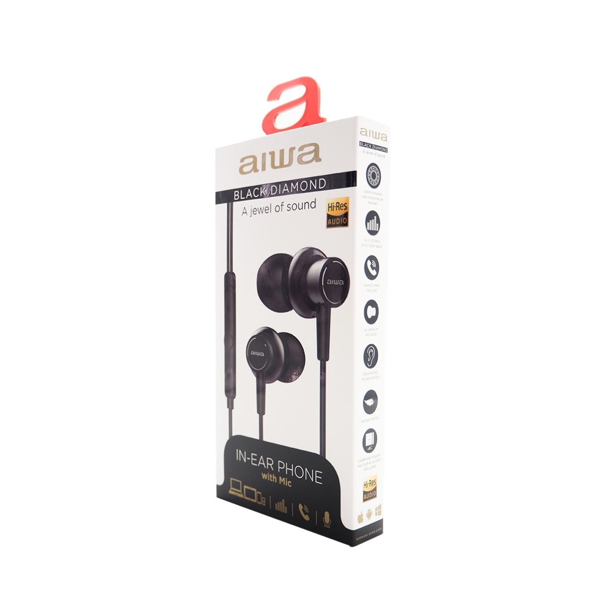 Auricular – Aiwa ESTM-500BK Negro, 10Hz-40kHz, cable 1,2 mts, Micrófono