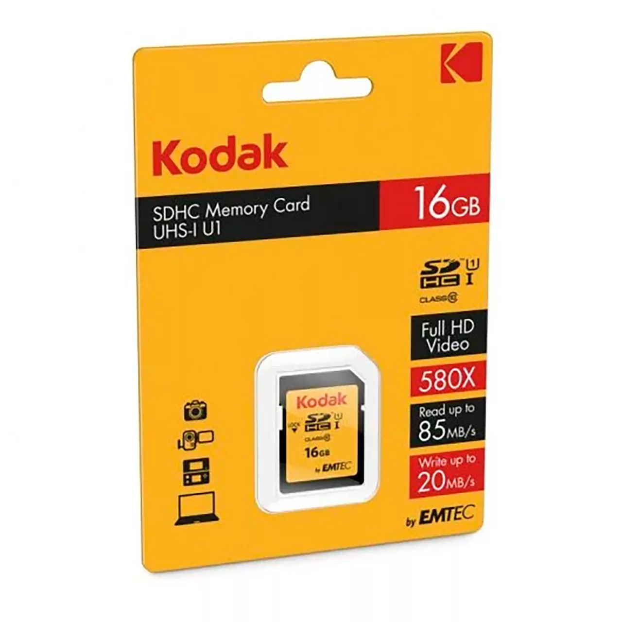 Kodak microSD 16GB 85MB/s C10 V10 tarjeta memoria