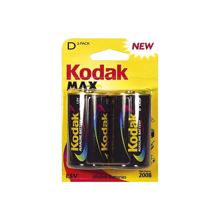 Pack de dos unidades de pilas Kodak Max con el que conseguirás resultados excelentes en todos tus dispositivos electrónicos: Pila Alcalina LR20 Kodak Max KD 2 (1,5v)