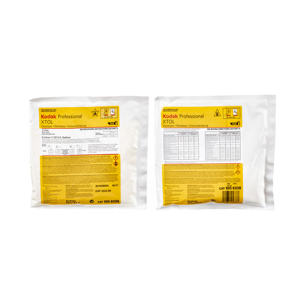 Químico Kodak Professional XTOL es un revelador en polvo de dos partes para película en blanco y negro, que se caracteriza por su capacidad para mantener la velocidad total de la película y ofrecer un grano notablemente fino y una gran nitidez. Es adecuado para el desarrollo push and pull, tiene una excelente vida útil y es una solución de trabajo limpio con un rendimiento estable para una variedad de métodos de procesamiento. Su composición a base de ácido ascórbico no contiene hidroquinona y es conveniente mezclar a temperatura ambiente. Este paquete contiene suficiente química para producir 5 litros de solución de trabajo fresca y también se puede usar como un reabastecedor para soluciones de trabajo agotadas de fuerza completa.