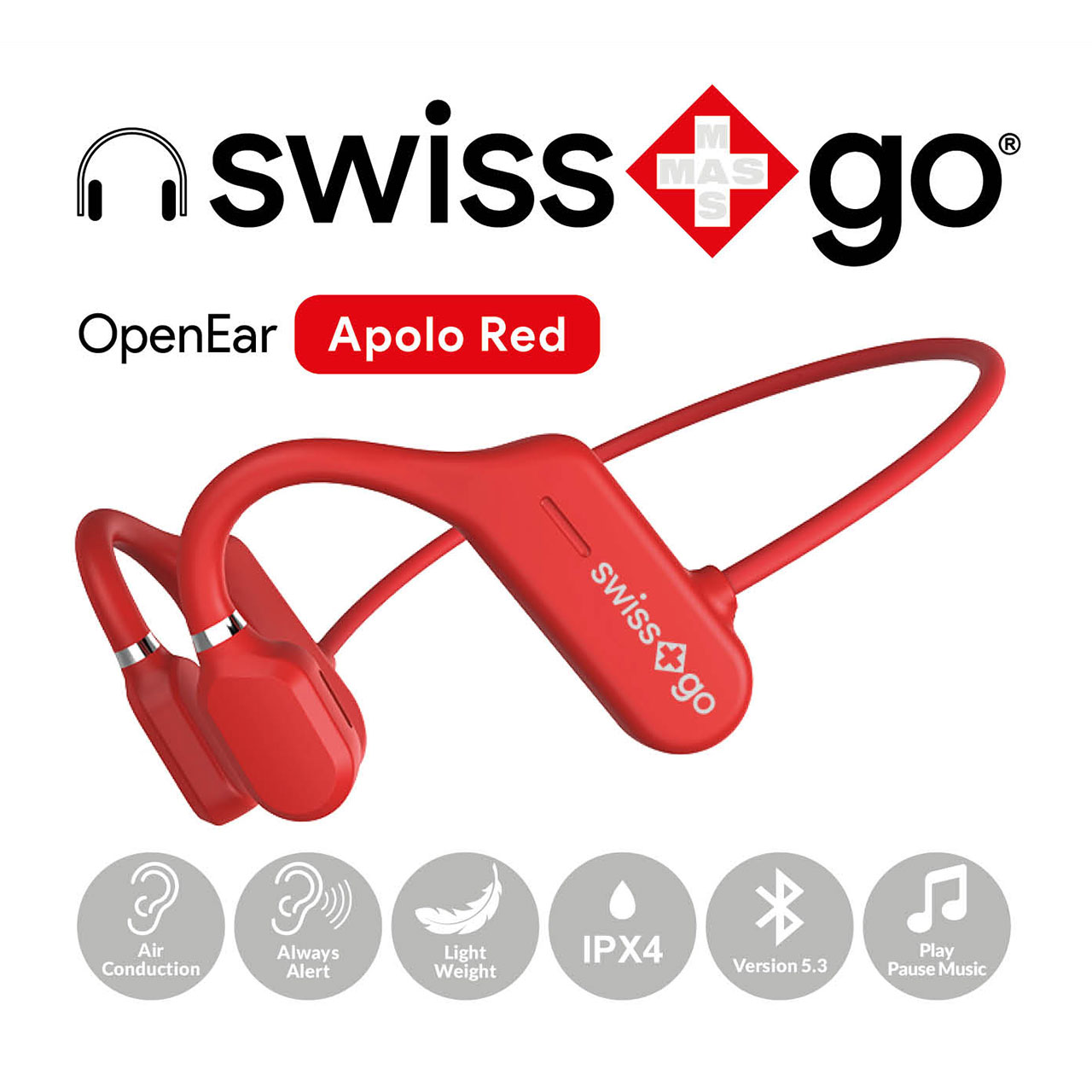 swiss+go Apolo Red Auricular Bluetooth | Para Smartphone y Tablet | Open Ear