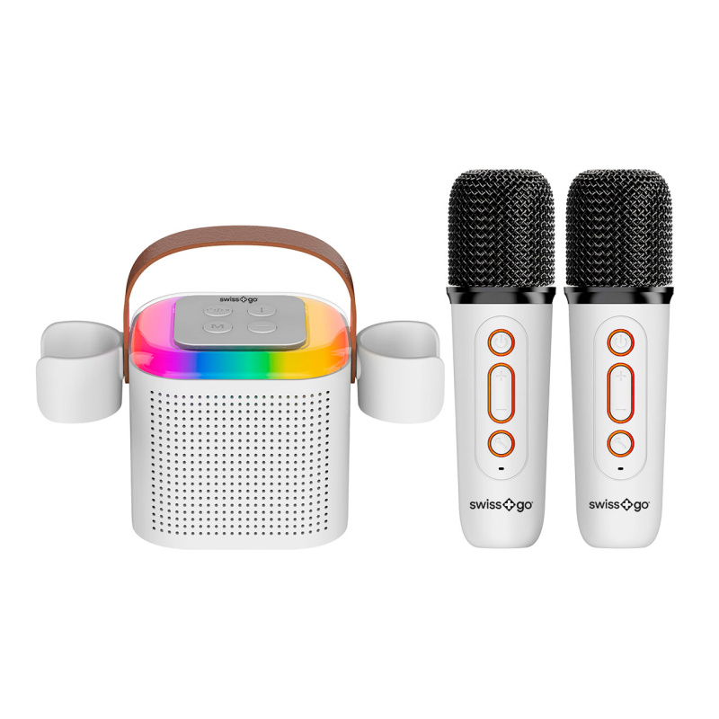 Descubre la magia de la música y la diversión con el Set de Altavoz swiss+go Magic Party Karaoke. ¡Haz que cada ocasión sea inolvidable con la libertad de cantar y bailar donde quieras!
